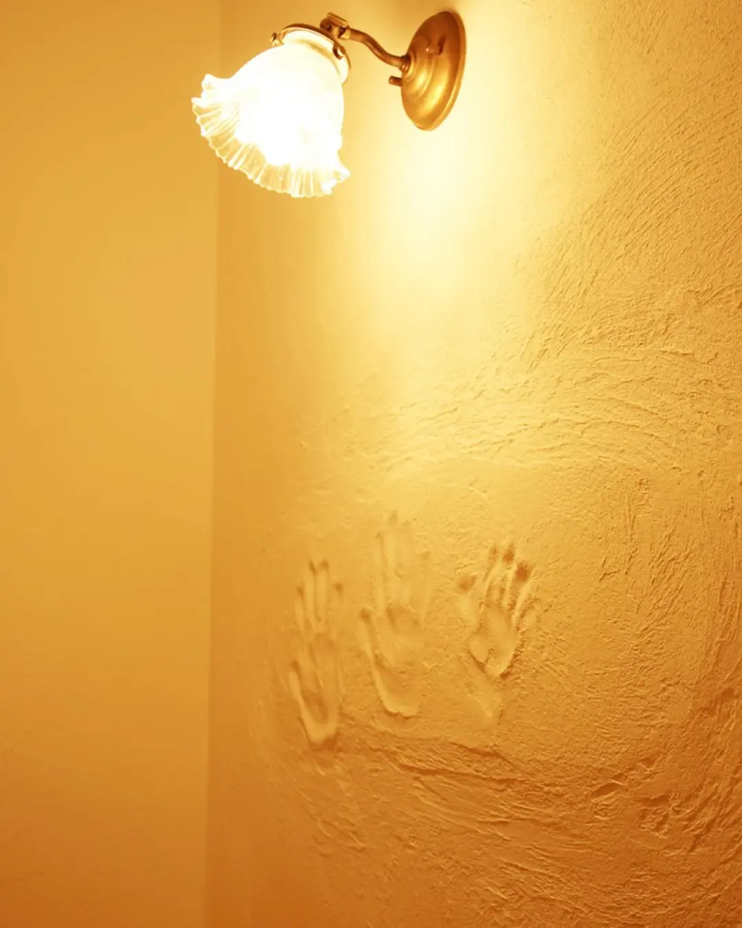 漆喰が乾く前に、お子様の手形や家族の記念を残す方法があります。