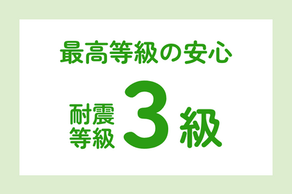 グッドホームの家は全棟、断熱等性能等級5級以上の基準を満たしています。また、大きな地震の時も安心の全棟耐震等級3級が標準仕様です。