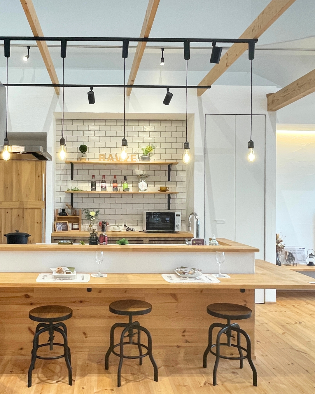 - 無垢材と漆喰を使った、自然素材の温もり溢れる空間です。