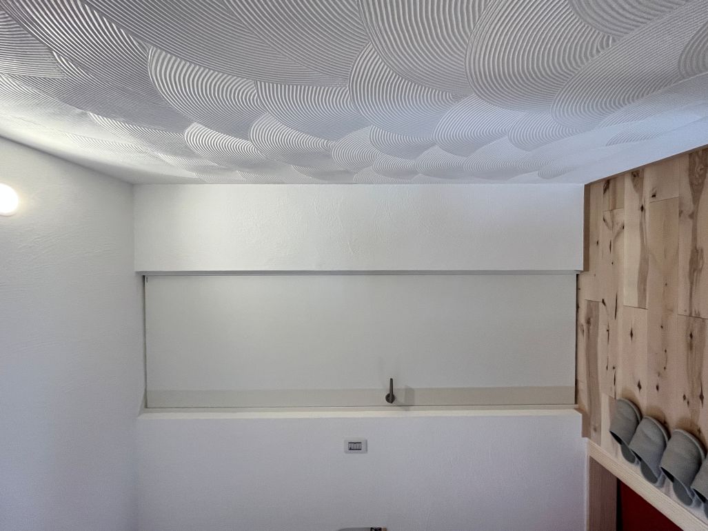 玄関で迎える、漆喰の「扇模様」