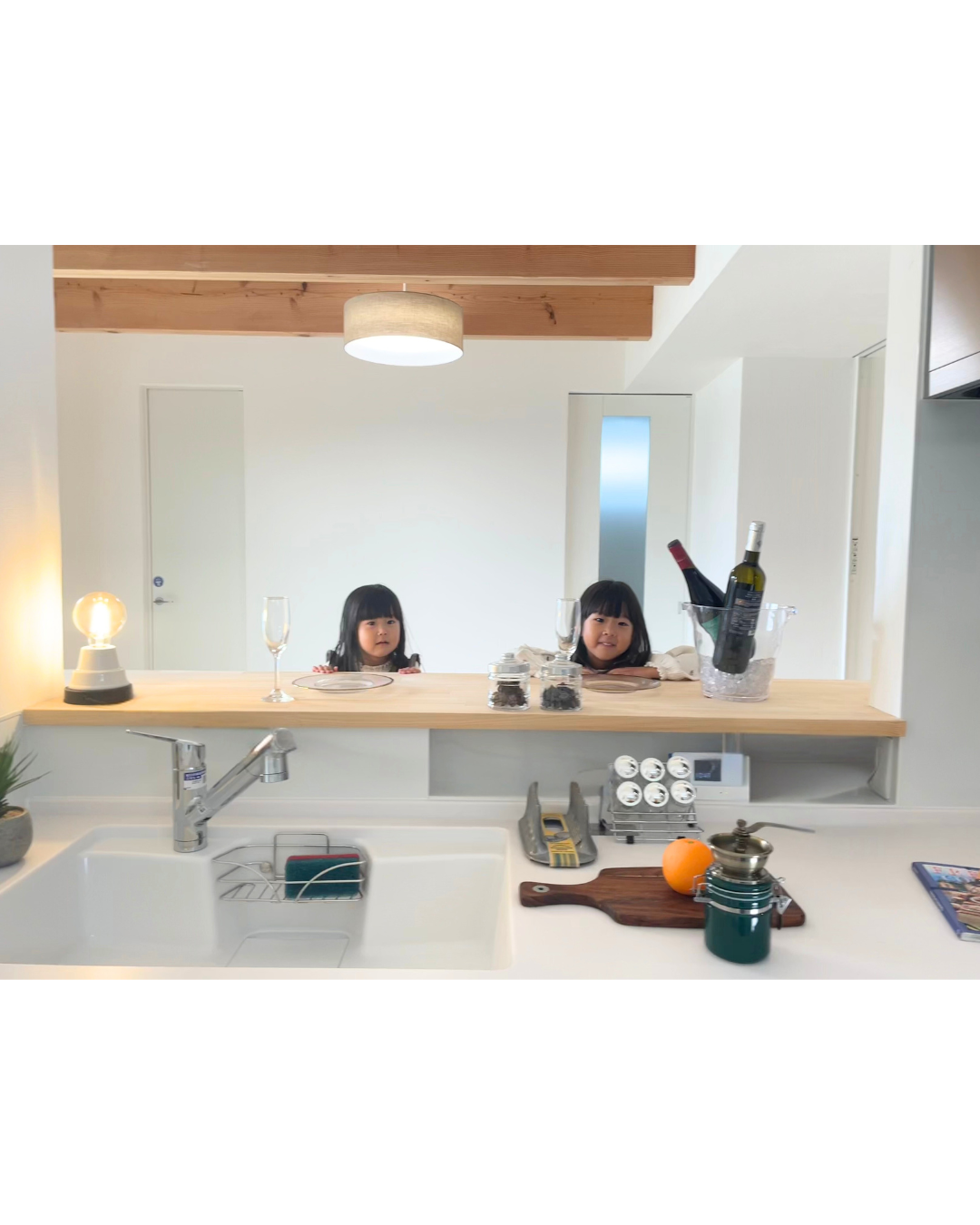 にぎやか6人のお子さまが育つ仲良し姉妹の「漆喰と無垢の家」
